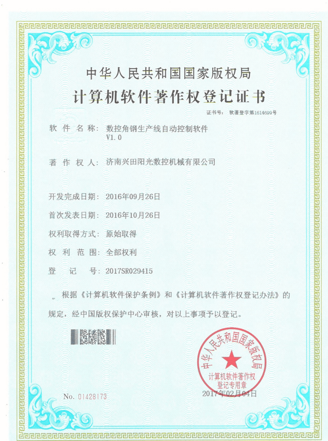 山東興田陽(yáng)光智能裝備股份有限公司,原名濟(jì)南興田陽(yáng)光數(shù)控機(jī)械有限公司,齊魯股權(quán)交易中心掛牌企業(yè)(股權(quán)代碼及簡(jiǎn)稱(chēng):100817 興田智能),是一家集產(chǎn)品開(kāi)發(fā)、生產(chǎn)、銷(xiāo)售為一體的新型現(xiàn)代民營(yíng)股份制并且具有自主進(jìn)出口經(jīng)營(yíng)權(quán)的山東省高新技術(shù)企業(yè)。公司坐落在美麗的泉城西部,西靠玉清湖觀(guān)光旅游風(fēng)景區(qū),東鄰京滬高鐵、京福高速公路及山東現(xiàn)代化國(guó)際物流中心,四面綠樹(shù)成蔭,廠(chǎng)內(nèi)花團(tuán)錦簇,交通便利,環(huán)境幽雅。公司主要從事鐵塔、管塔、鋼結(jié)構(gòu)、電力鐵附件等行業(yè)型材的智能制造類(lèi)數(shù)控加工設(shè)備和其他非標(biāo)準(zhǔn)數(shù)控設(shè)備智的研發(fā)、生產(chǎn)和銷(xiāo)售業(yè)務(wù)……