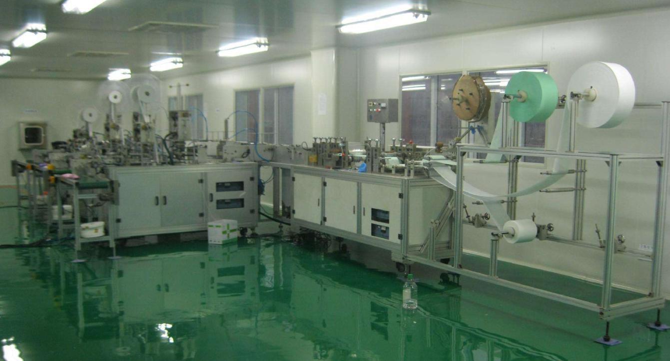 一、設(shè)備介紹: 主要用于平面式口罩自動(dòng)成型:整卷布料放卷后經(jīng)過(guò)滾輪驅(qū)動(dòng),布料通過(guò)自動(dòng)折邊、包邊;鼻梁條整卷牽引開(kāi)卷,定長(zhǎng)裁切后導(dǎo)入至包邊布料中,雙邊通過(guò)超聲焊接至封口,再經(jīng)過(guò)超聲側(cè)向封口,通過(guò)切刀裁切成型;通過(guò)流水線(xiàn)將口罩輸送至兩個(gè)口罩耳帶熔接工位,通過(guò)超聲焊接最終口罩成型;當(dāng)口罩制成后,通過(guò)流水線(xiàn)輸送至平帶線(xiàn)收集。 二、設(shè)備安裝與配置需求: 設(shè)備尺寸:約6500mm(L)×4500mm(W)×1900mm(H); 設(shè)備重量:≤5000kg,地面承重≤500KG/m2; 工作電源:設(shè)備 220VAC±5﹪,50HZ,額定功率約 9KW; 壓縮空氣:0.5~0.7 MPa,使用流量約 300L/min; 使用環(huán)境:溫度 10~35℃、濕度 5-35%HR,無(wú)可燃性、腐蝕性氣體,無(wú)粉塵(潔凈度不低于 10 萬(wàn)級(jí))。 三、設(shè)備的生產(chǎn)能力: 生產(chǎn)效率: 80-120ppm; 設(shè)備生產(chǎn)合格率:99%(來(lái)料不滿(mǎn)足要求、員工不當(dāng)操作除外時(shí)) 設(shè)備故障率:2%(指設(shè)備自身所產(chǎn)生的故障) 四、生產(chǎn)規(guī)格: 標(biāo)準(zhǔn)型:175*95mm 五、設(shè)備的主要組成結(jié)構(gòu) 1 SS 外層無(wú)紡布/過(guò)濾無(wú)紡布/SS 內(nèi)層無(wú)紡布放卷機(jī)構(gòu) 3 套 2 鼻梁條放卷機(jī)構(gòu) 1 套 4 鼻梁條驅(qū)動(dòng)、裁切機(jī)構(gòu) 1 套 寬度 3-7mm 5 布料折邊機(jī)構(gòu) 1 套 6 滾焊封邊機(jī)構(gòu) 1 套 雙邊 8 布料扇折機(jī)構(gòu) 2 套 9 滾焊?jìng)?cè)縫機(jī)構(gòu) 1 套 10 滾封機(jī)構(gòu) 1 11 轉(zhuǎn)運(yùn)流水線(xiàn) 1 條 12 分流機(jī)構(gòu) 1 套 13 耳帶焊機(jī)機(jī)構(gòu) 1 套 14 下料流水線(xiàn) 1 條 15 操作系統(tǒng) 1 套 16 操作面板 1 套