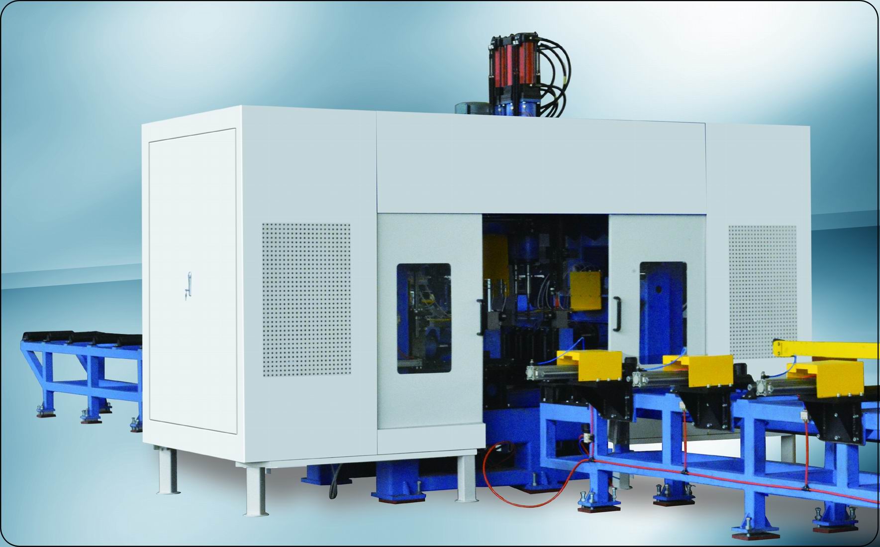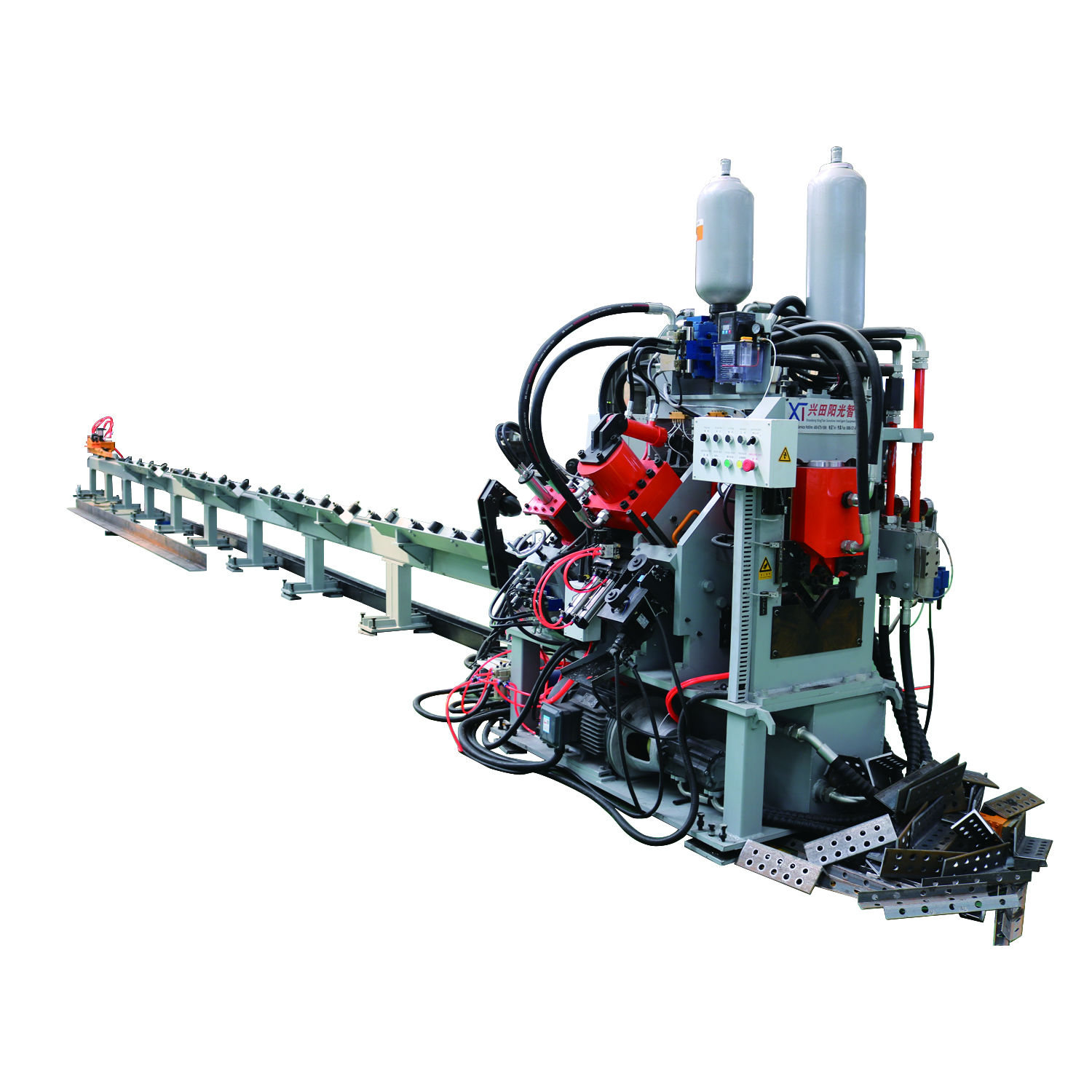 本生產(chǎn)線(xiàn)用于汽車(chē)車(chē)架、縱梁、橫梁、板材沖孔、鉆孔作業(yè)的加工設(shè)備??傮w結(jié)構(gòu)設(shè)計(jì)合理,鋼性好,工作穩(wěn)定,換模準(zhǔn)確可靠,加工效率高。